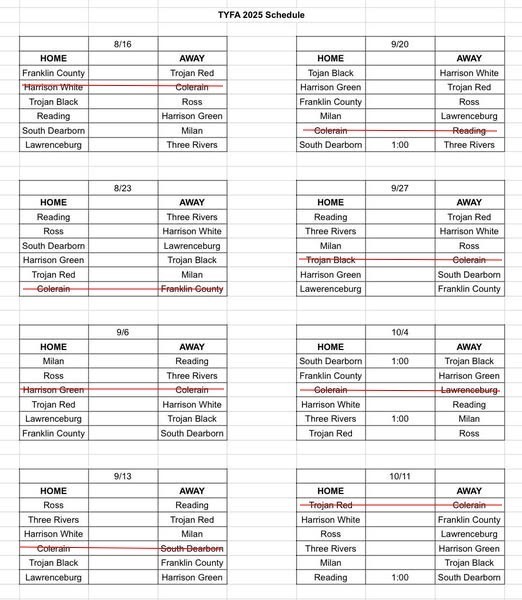 Revised 2025 TYFA schedule